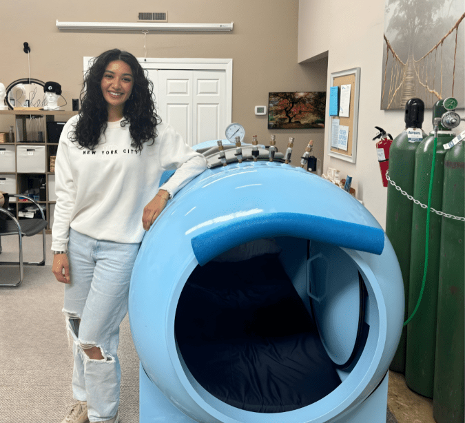 Hyperbaric Oxygen Therapy (HBOT) is a noninvasive therapy where you lay in a chamber and breathe 100% oxygen air through a mask. The increase of oxygen allows your body to absorb more oxygen, which increases your body's ability to heal and recover. Learn more here.